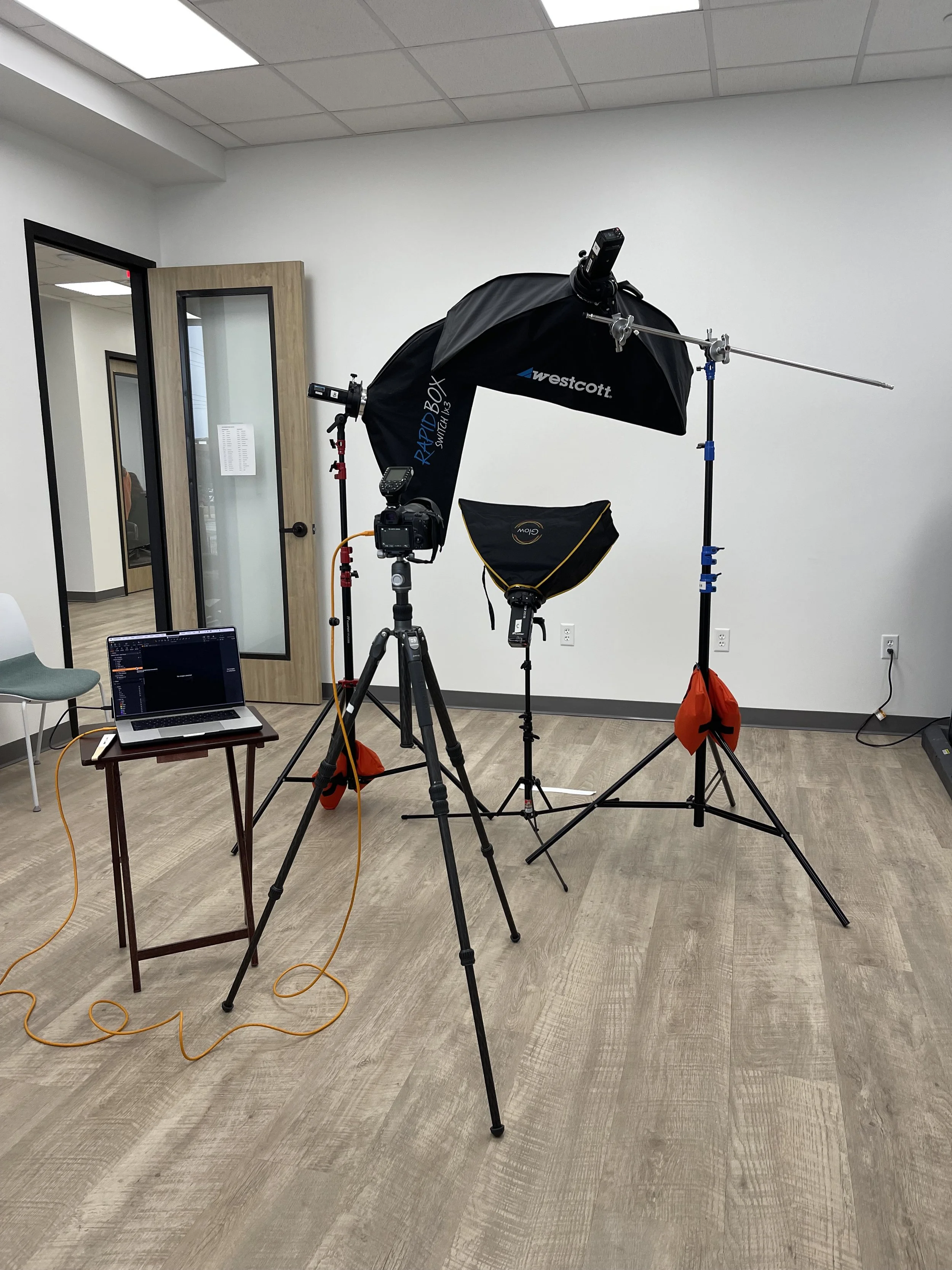 Zero disruption.We arrive with professional studio lights, backdrop, and equipment, and transform a conference room, lobby, or open office space into a fully operational portrait studio. Your team doesn't travel. Your workday doesn't stop. Your images look like they were shot in the studio in Dallas.